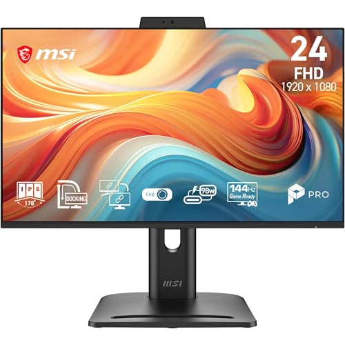 MSI PRO MP245PDG E14 23.8-Inch FHD Docking Monitor, 1920 x 1080 IPS, 144 Hz, 1ms, Daisy Chain, LAN Port, Built-in speaker/mic, KVM, PiP/PbP, HDMI 2.0b, DP 1.2a, USB Type-C (98W PD), Vesa Mount, Black