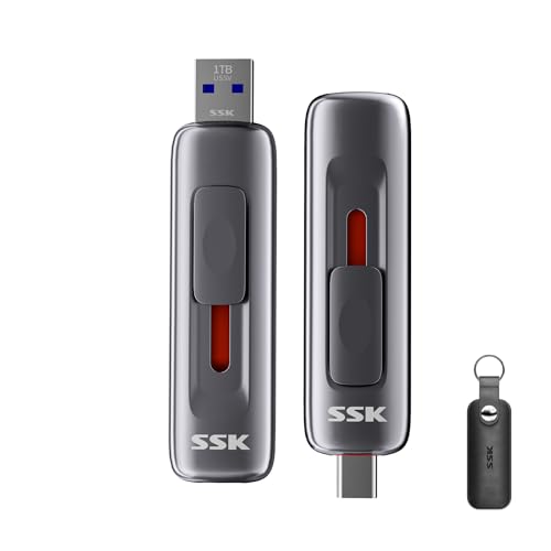 SSK 1 TB SSD USB C Stick Up to 1000MB/s, Fast External SSD Hard Drive 1TB Type-c +A USB3.2 Gen 2, USB-Memory Stick for iPhone 15/PS4/Android Phone/Tablet/Windows/Mac