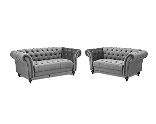 DProT Handmade Pu-Leather Chesterfield Sofa Armchair 1.5, 2 or 3 Seater Settee (2 Seater Sofa Brown)