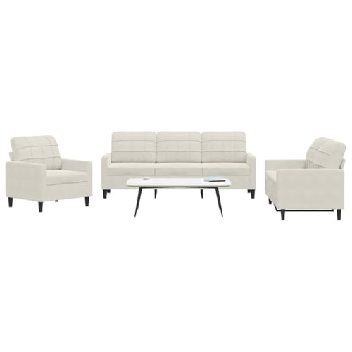 QUAHEAS 3-Piece Sofa Set, Cream Velvet Living Room Furniture Set with Armchair, 2-Seater and 3-Seater Sofa, Robust Metal Frame, Comfortable Sitting Experience