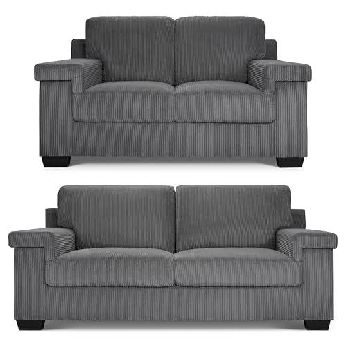 Bravich Enzo 2 and 3 Seater Sofa Set, Corduroy Fabric Couch Suite with Adjustable Dual Seating Positions, Large Settee Pair with Solid Wood Frame and Thick Foam Cushions, Grey