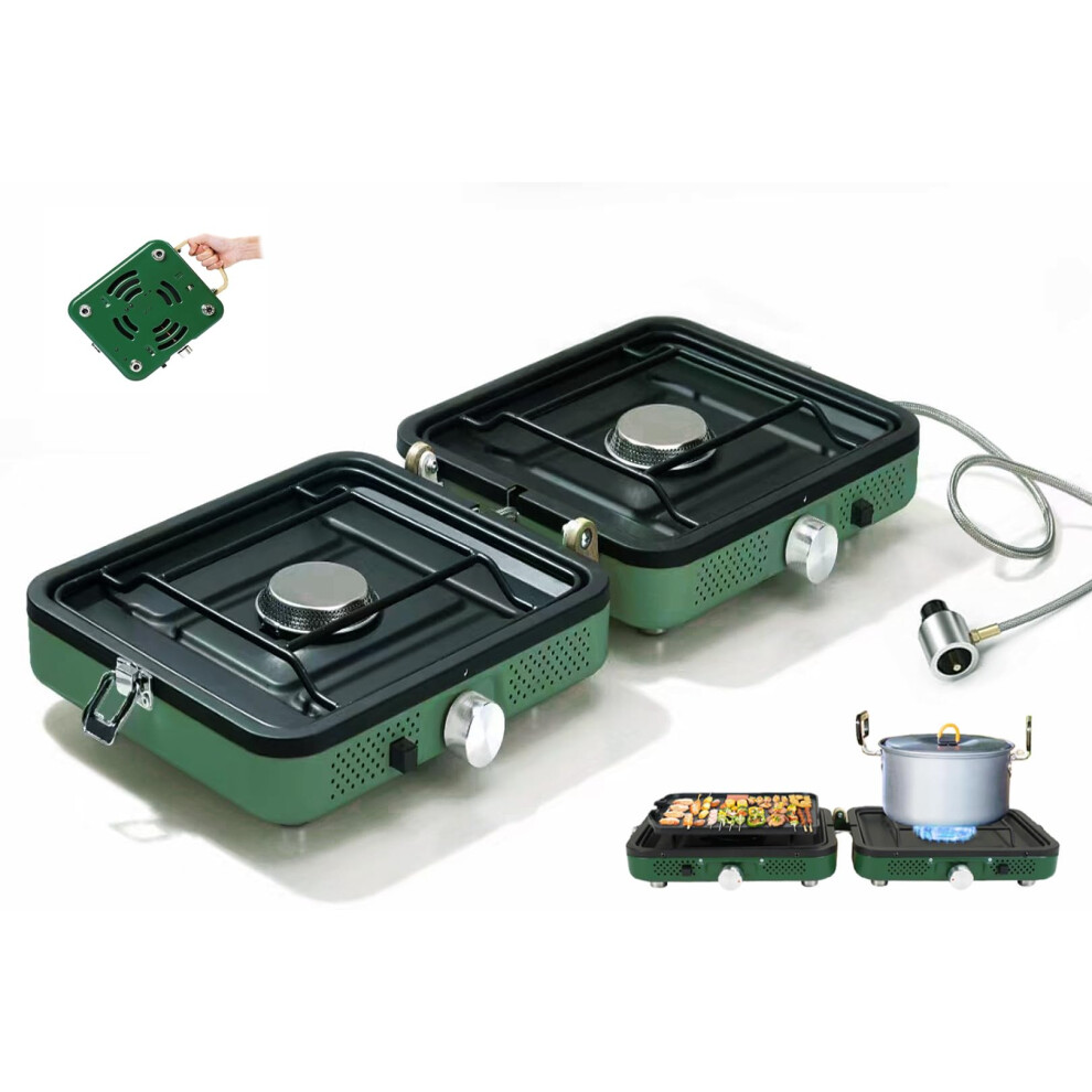 Portable Propane Camping Stove 2 Burner Foldable BBQ Plate 17200BTU Outdoor Cooking Green