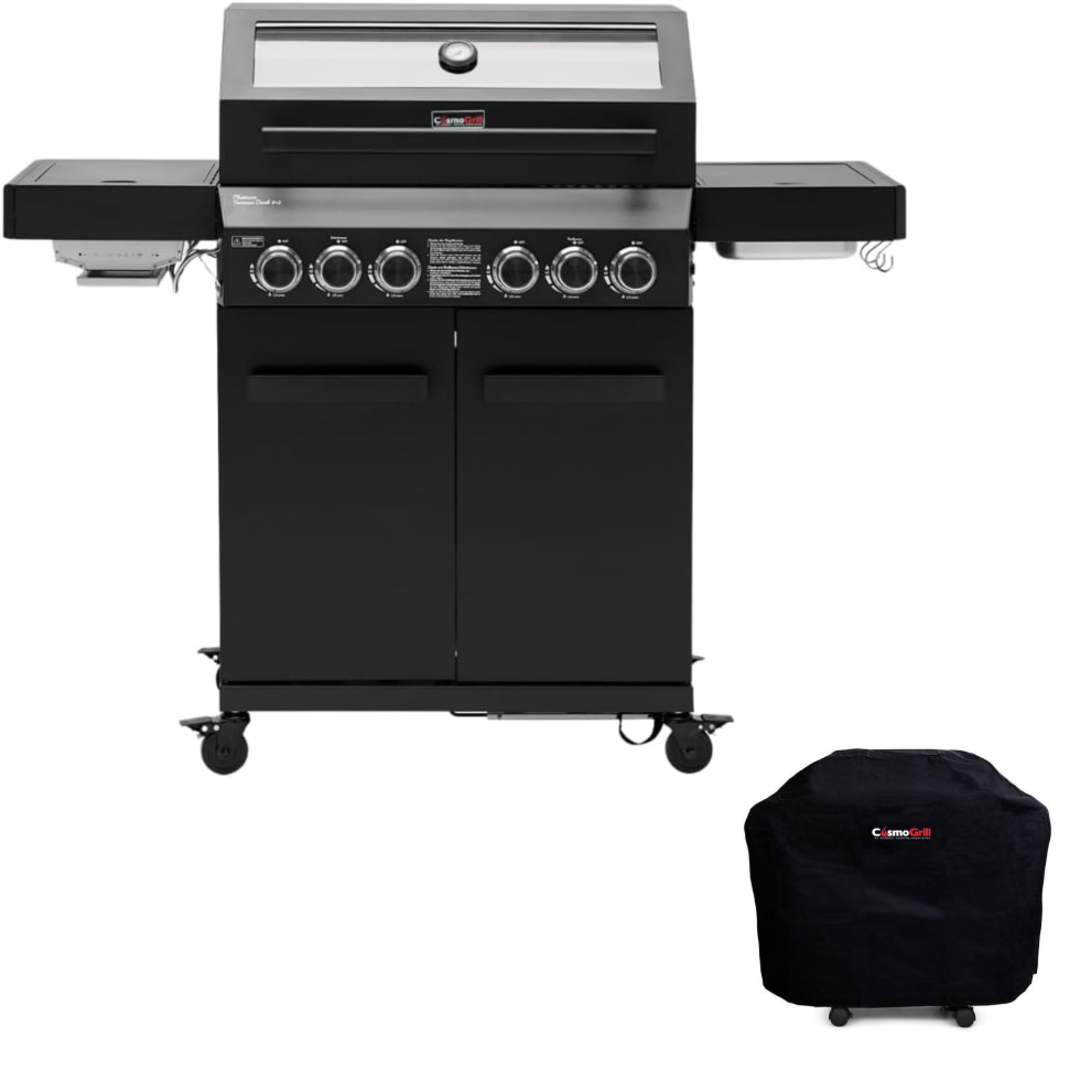 (With Cover) CosmoGrill 6 Burner Yamara Dark 4+2 Gas BBQ