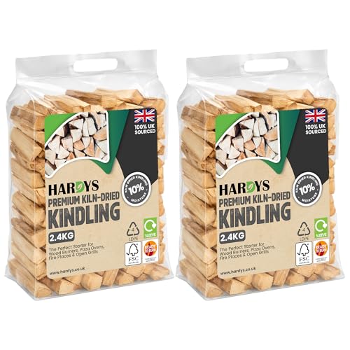 Hardys Kindling Wood, 2 Pack - 4.8kg (2 x 2.4kg) Approx. | Instant Light Firewood Logs, Smokeless - Kiln Dried - BBQ, Fire Heat Logs for Wood Burner, Pizza Oven, Open Fire Pit