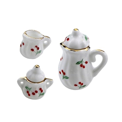 Beaupretty 2 Sets Miniature Ceramic Cherry Kettles with Cups Dollhouse Accessories Small Fairy House Furniture DIY Scene Decoration