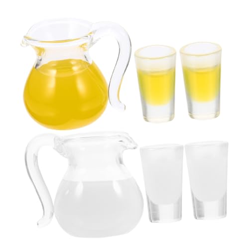 ifundom 2 sets Miniature Jug and Cup for Dollhouse Accessories Realistic Mini Glass Kettles with Orange Juice and Milk Designs Mini House Decoration for Pretend Play and Scene Enhancement