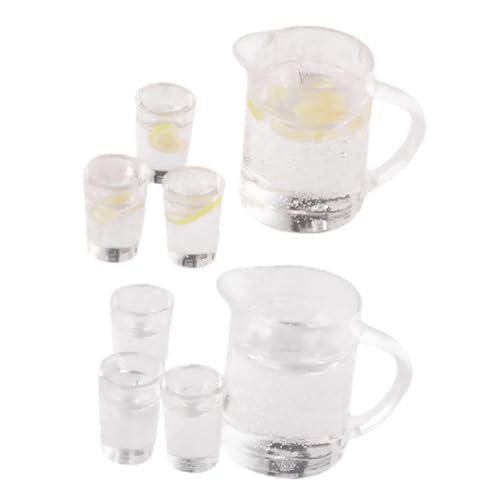 FRCOLOR Miniature Water Lemonade Set 8pcs with 2 Kettles and 6 Mini Cups, Mini House Accessories for Dollhouse Decor and Kitchenware, Miniature Drinks Display for Photography and