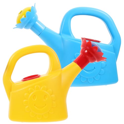 SKISUNO 2pcs Watering Can Thickened Mini Watering Kettles for Gardening and Bath Play Easy Grip Handles Bright Colors for Boys and Outdoor Water Fun Random Color