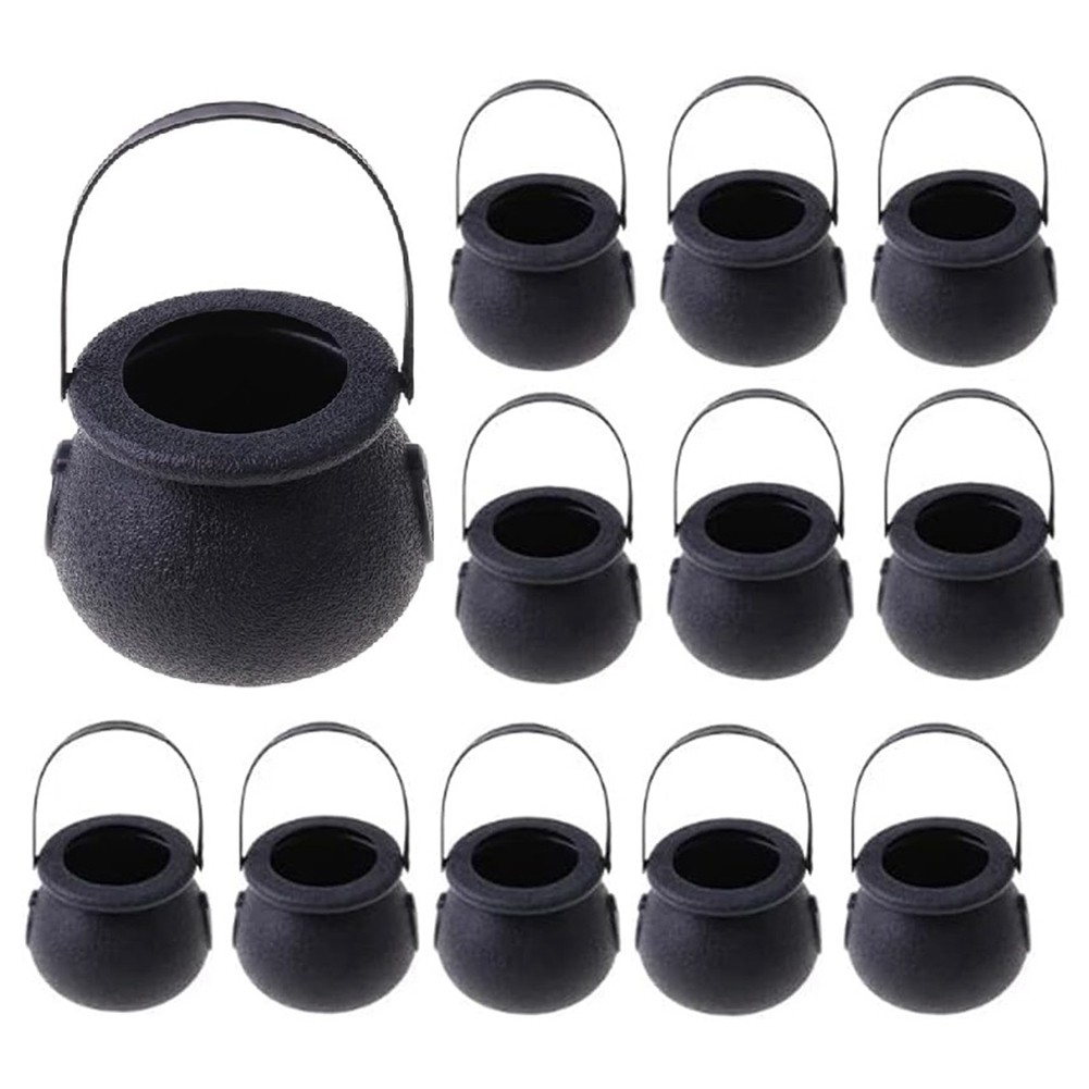 2X(12Pcs Candy Kettles Witch Skeleton Cauldron Holder Pot with Handle for3345