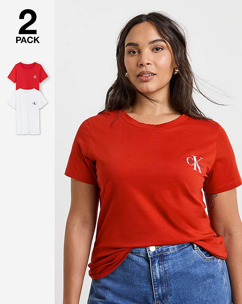 Calvin Klein Women’s 2 Pack Short Sleeve V-Neck Logo T-Shirts, White (Brilliant White), XL