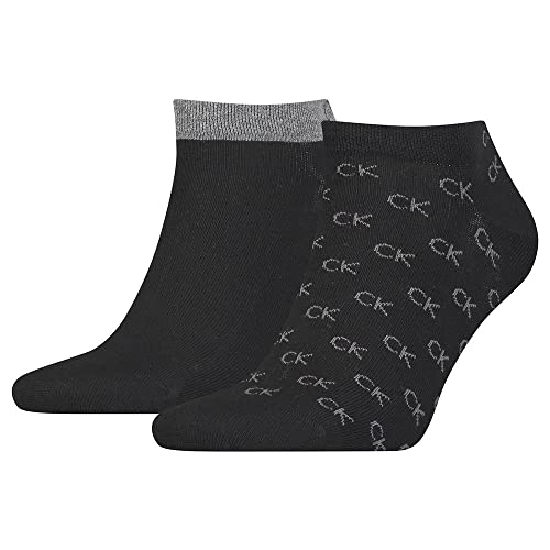 Calvin Klein mens All Over CK Logo Men's Liner Socks 2 pack Sneaker, Black, 43/46