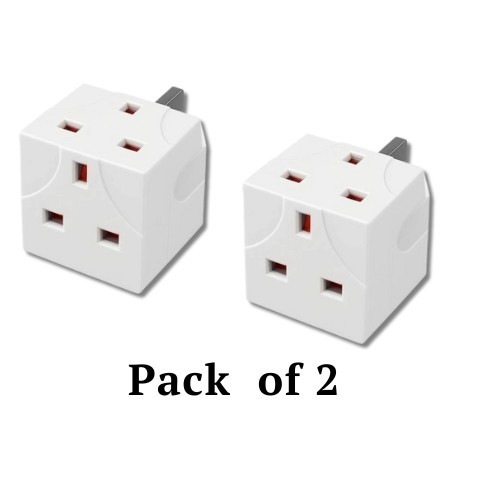 (Pack of 2) Premium Quality 2 WAY 3 PIN PLUG ADAPTER SOCKET MULTI PLUG 13AMP