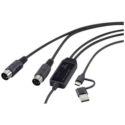 Renkforce RF-6439636 Adapter [2x DIN plug 5-pin - 1x USB-C®, USB-A] Black 2 m