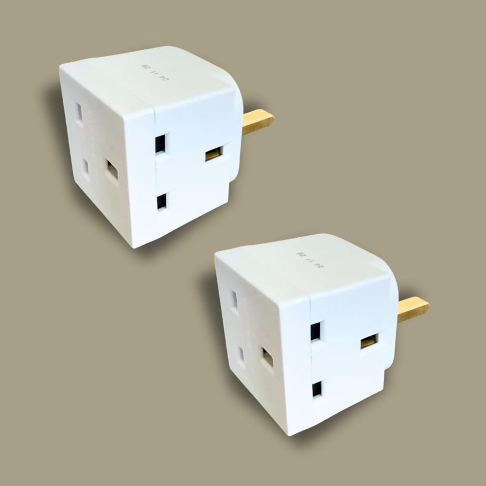 2 Way 3 Pin Plug Adapter - 13A Multi-Plug Power Adaptor Extension With Double S