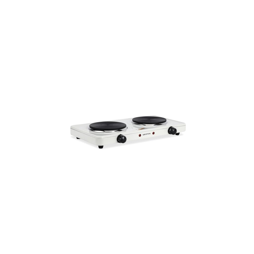 KRYPTON 2000W Double Hot Plate for Table Top Cooking | 2 Ring Hob with Cast Iron Heating Plates, Adjustable Temperature Knob | Lightweight & Portable Electric Hob for Home Camping & Caravan Cooking