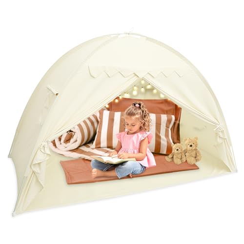 Kids Tent Playhouse with Star Lights and Tote Bags, Kids Play Tent Indoor & Outdoor, Washable Teepee Tent for Boys & Girls,Toy House for Toddler, Neutral Color Play Room Furniture (Beige-2)