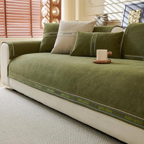 xotoa Soft Chenille Sofa Covers, Suitable For 1/2/3/4-seat Sofas, L-shaped Sectional Sofas, And All Seasons(Green,90 * 210cm)