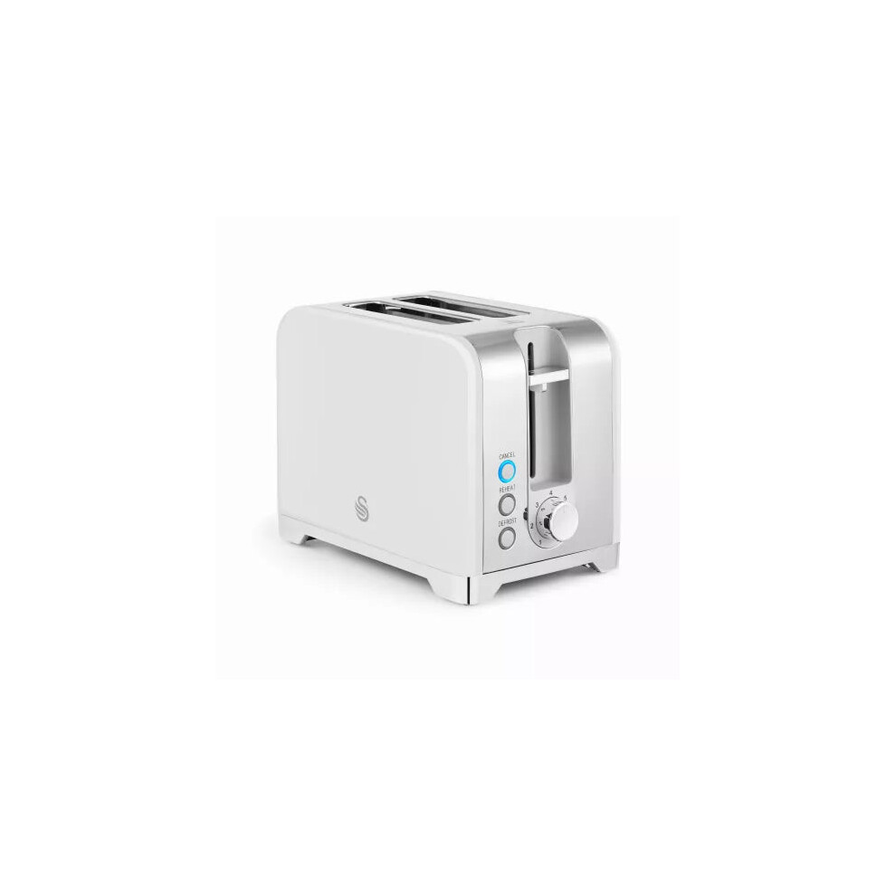 Swan Solace 2-Slice White Toaster: Variable Width, 7 Browning Levels, Defrost, Reheat
