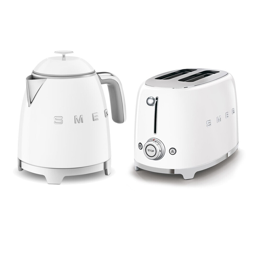Smeg 50s Style Retro Range Breakfast Set, 0.8L 1400W Mini Kettle and Multi-Functional Control 2-Slice 950W Toaster, White, KLF05WHUK/ TSF01WHUK