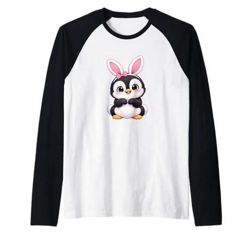 Cute Penguin Easter Bunny with Ears and Egg Design Raglan Baseball Tee