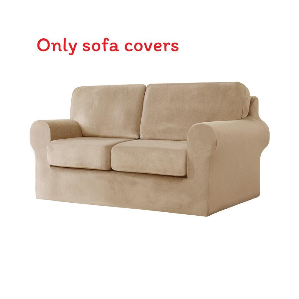 (2 Seater Khaki) Color Sofa Solid Slipcover Protective Case For One Two Three Home Sofas Seat