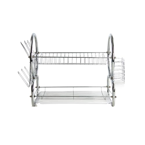 SK COOKWARE 2 Tier Stainless Steel Dish Drainer Drying Rack with Cutlery Holder Chrome Kitchen Sink Dish Rack with Drip Tray Space-Saving Countertop Organizer