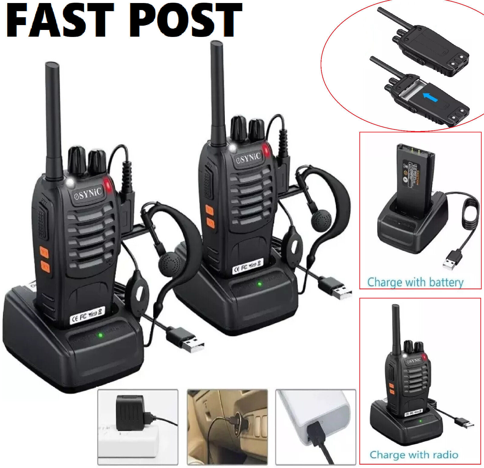 eSynic 2Pcs Walkie Talkies 2 Way Radio Long Range Rechargeable Walkie Talkie VOX