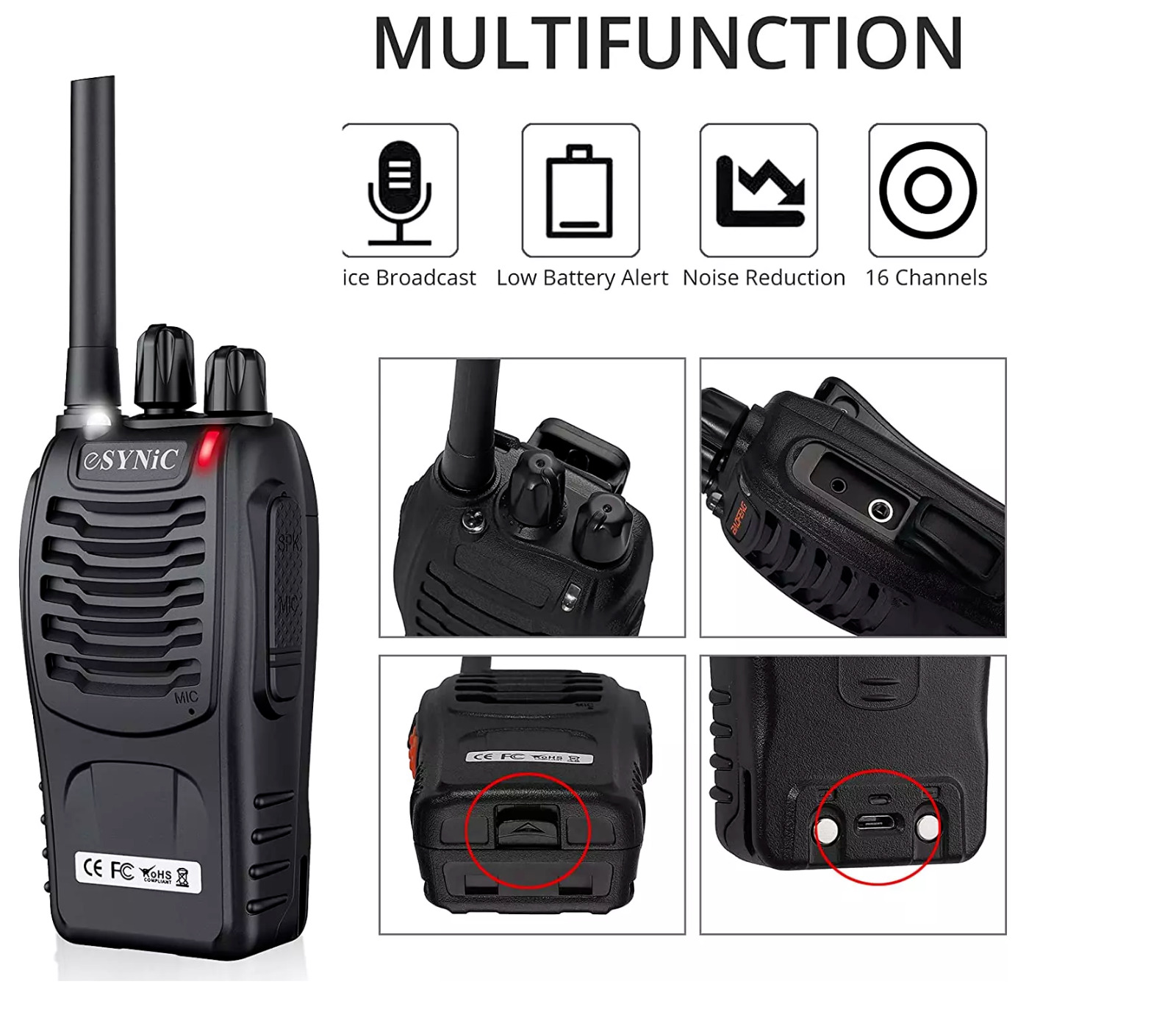 eSynic 2Pack Professional Walkie Talkies for Adults Rechargeable Walkie...