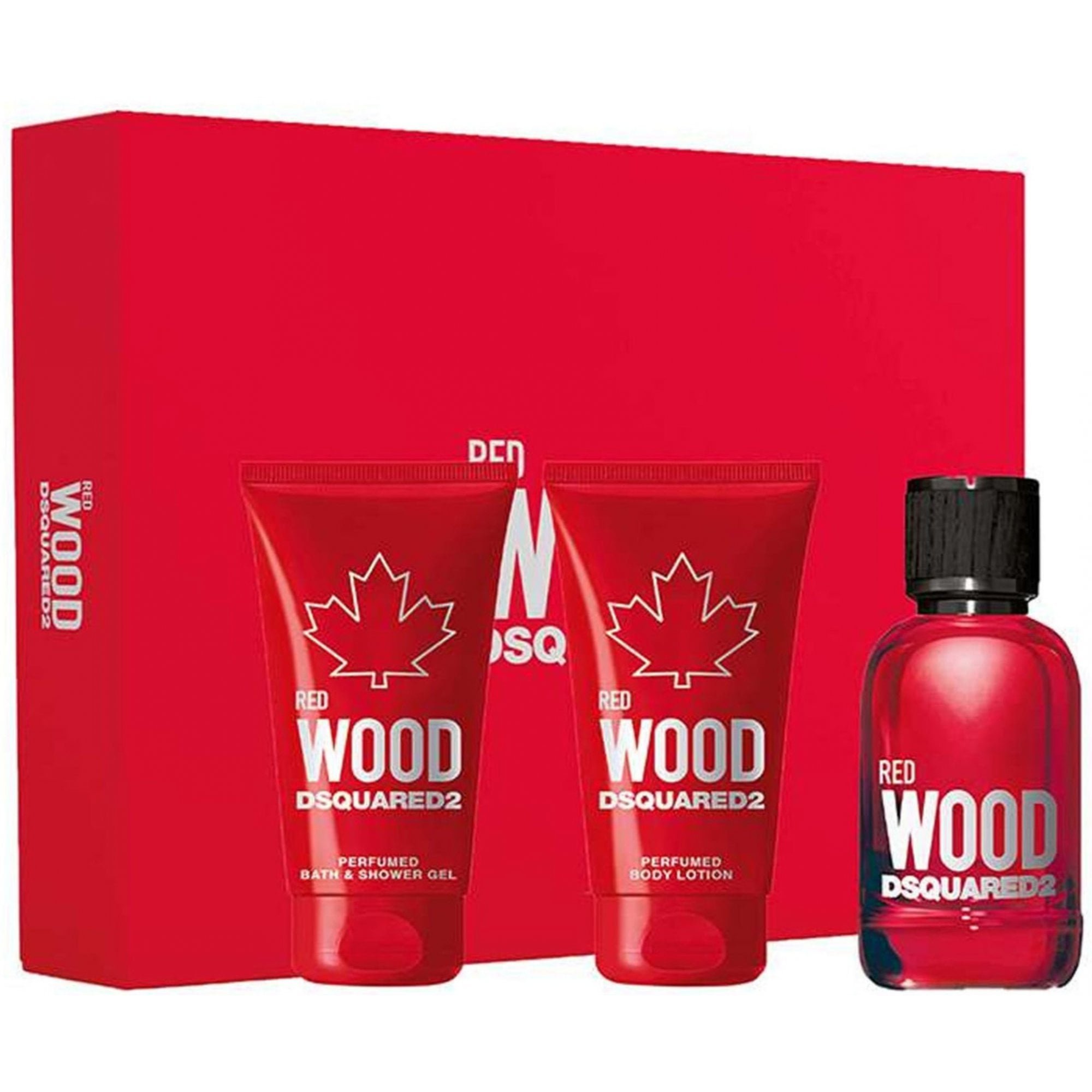 Dsquared2 Red Wood Gift Set 50ml EDT Spray + Shower Gel 50ml + Body Lotion 50ml