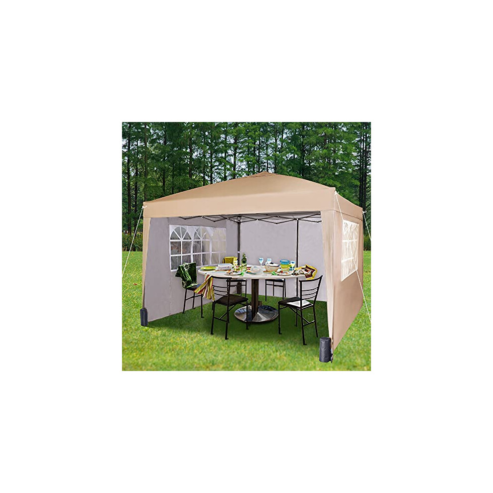 Pop-up Gazebo 3m x 3m with Sides 2 Wind Bars & 4 Weight Bags & Silver Protective Layer Waterproof Marquee Canopy WS (Beige)