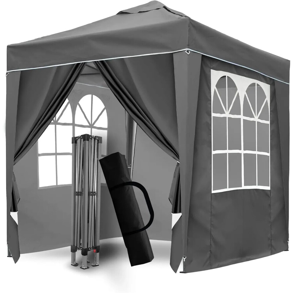 Premium 2x2m Pop-Up Gazebo & Side Walls, Water Resistant with Carry Bag, Stakes & Weight Bags - Grey - DG163