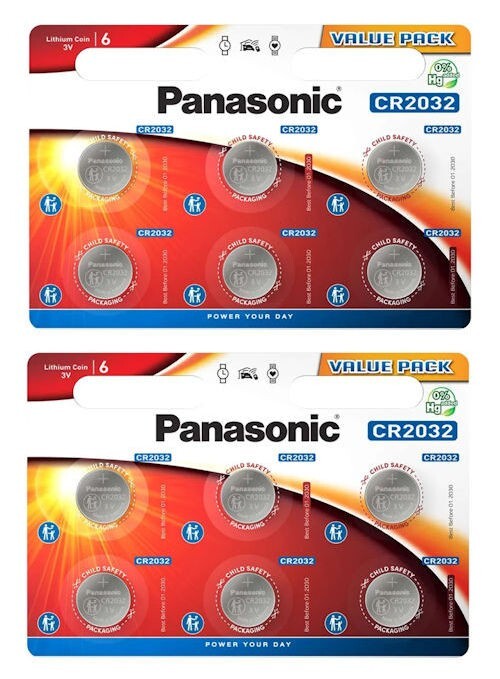 12 x Panasonic CR2032 3V Lithium Coin Cell Battery 2032