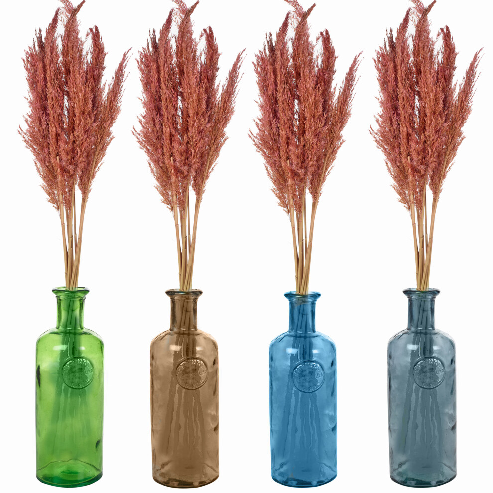 (Blue, Pink) 20cm Recycled Glass Vase + Wild Pampas Reed Stems