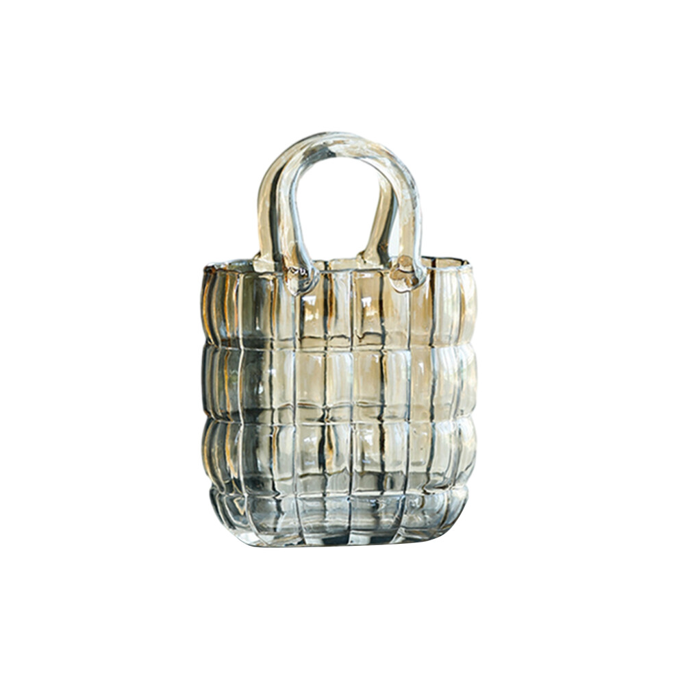 Transparent Glass Vase 20cm Hand Basket for Flowers Fish Tank Display