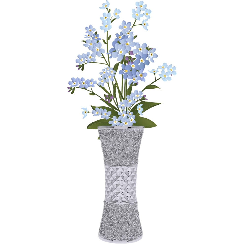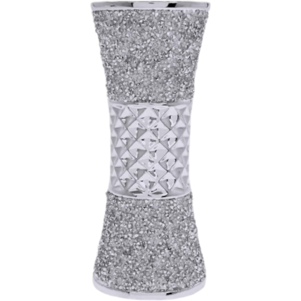 Crushed Diamante Bling Texture Silver Sparkle Flower Vase, 20cm
