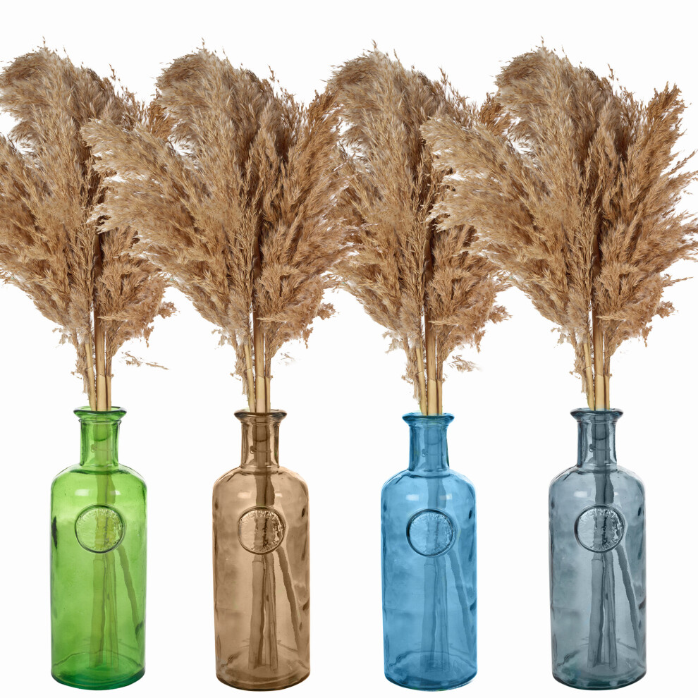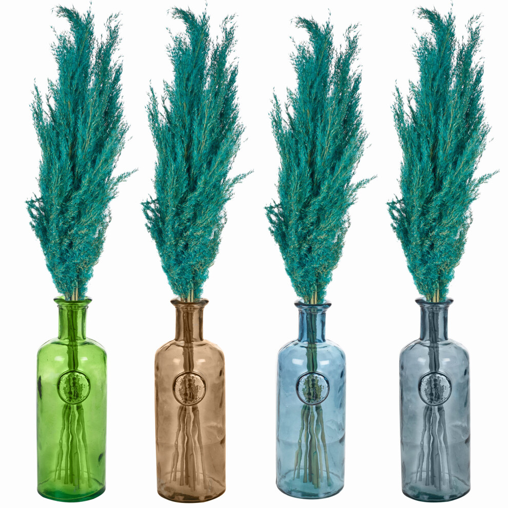 (Blue, Green) 20cm Recycled Glass Vase + Wild Pampas Reed Stems