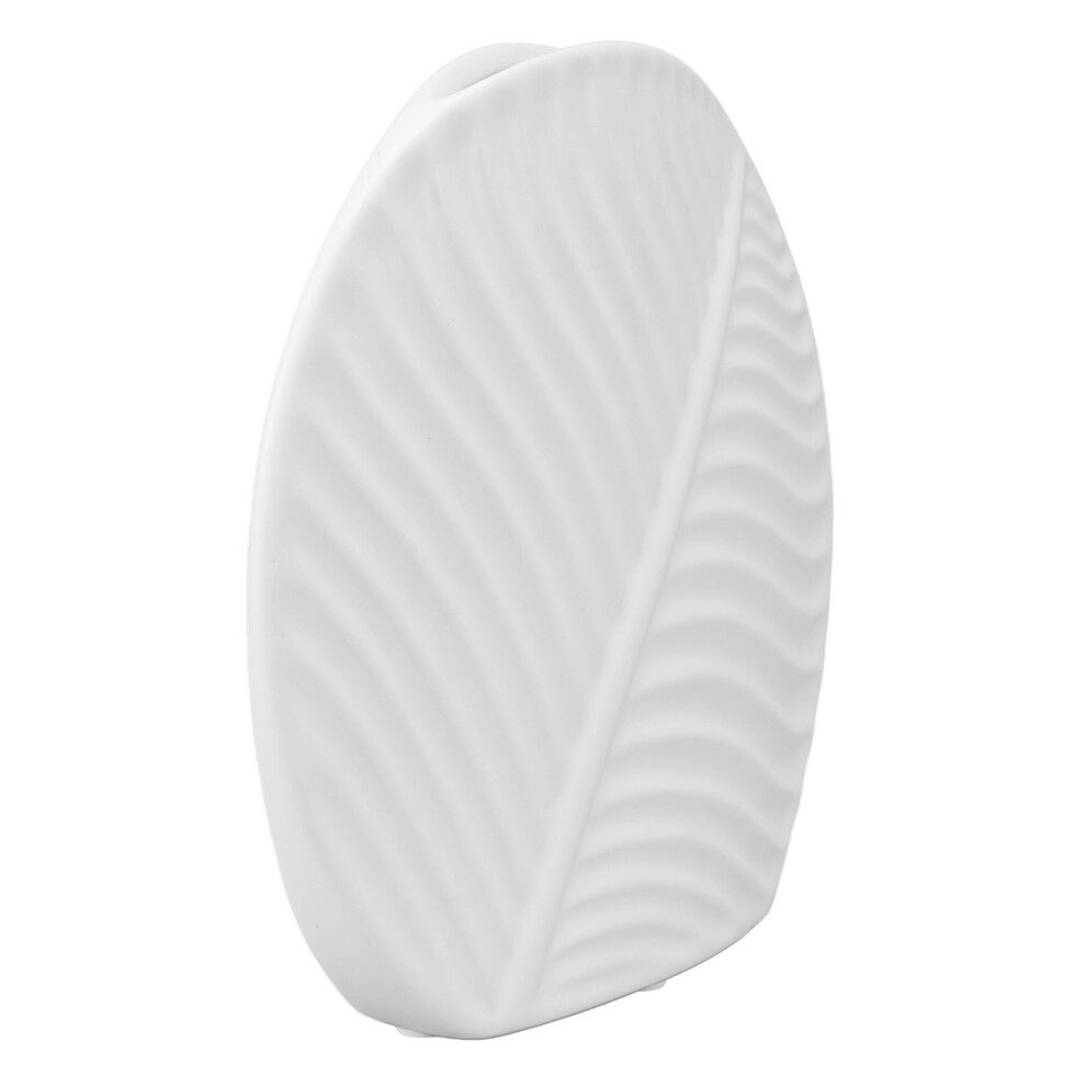 Nordic Leaves Pattern Ceramic Vase 20cm Flat Leaf Porcelain for Living Room, Office