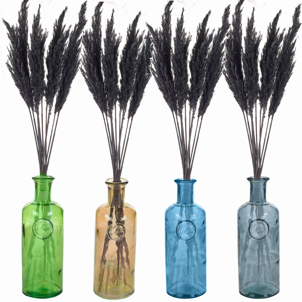 (Blue, Black) 20cm Recycled Glass Vase + Wild Pampas Reed Stems