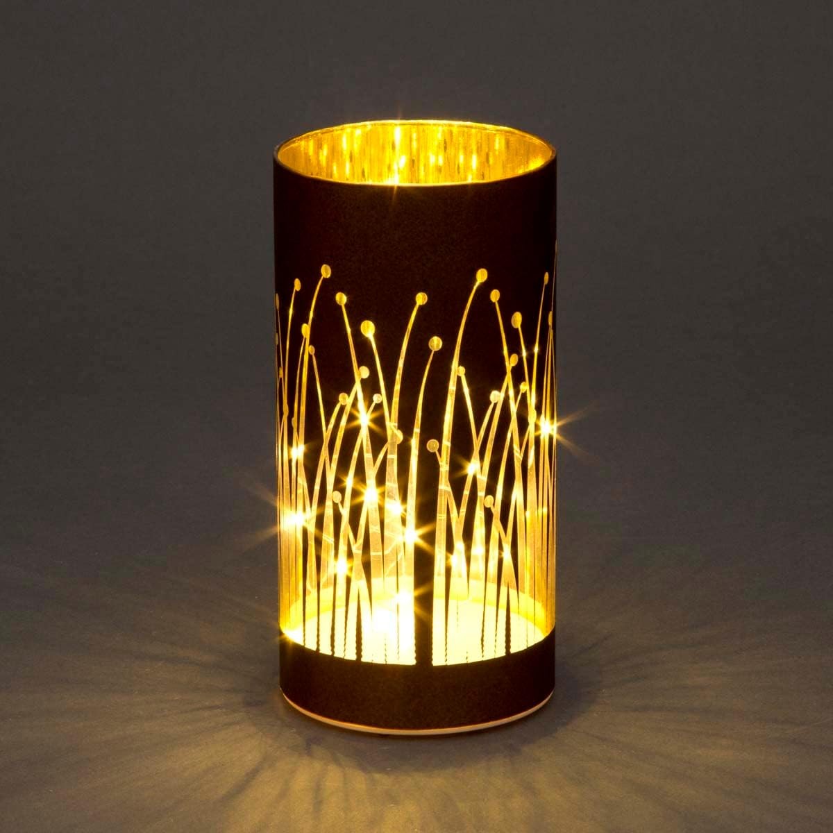 SHATCHI 20cm Christmas Decorated Vase Table Lamp Etched Glass Tube Forest Firework Scene Copper Cylinder LED Fairy Lights Battery Operated