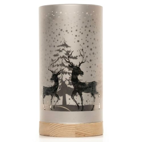 SHATCHI 20cm Christmas Decorated Vase Table Lamp Etched Glass Tube Forest Snowfall Scene Silver Cylinder LED Fairy Lights Battery Operated
