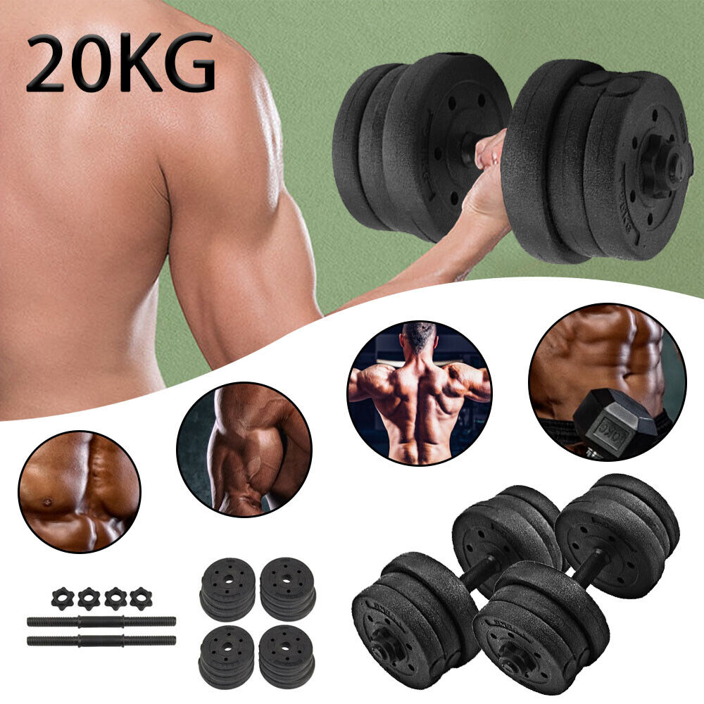 20KG DUMBBELL ADJUSTABLE BARBELL SET HOME GYM WEIGHTS WORKOUT DUMBELLS DUMBBELLS