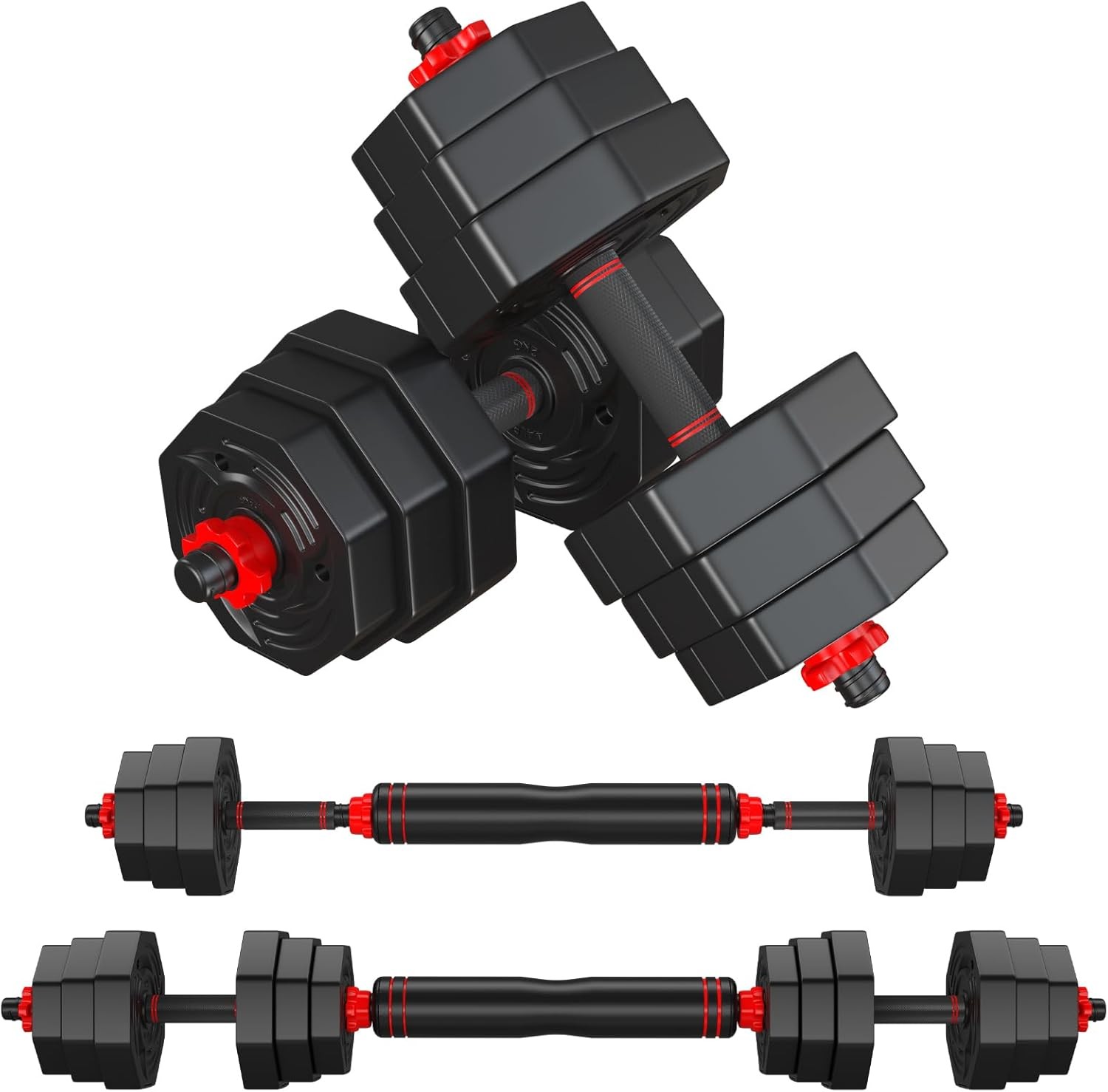 Gallant 20kg Adjustable Dumbbells Set, 2 in 1 Dumbells and Barbell Hand Free Weights Set Strength Training Lifting Body Building, Fitness Exercise Eq