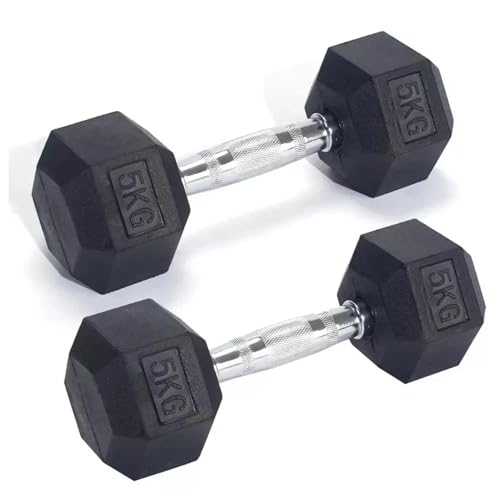 Dumbbells Weights Hex Dumbbell Set Hexagonal Rubber Dumbell with Metal Handles Anti-Rolling Weightlifting Bodybuilding Exercise Fitness Workout Training Home Gym 5-20kg Pairs (5kg x 2 Dumbbells)