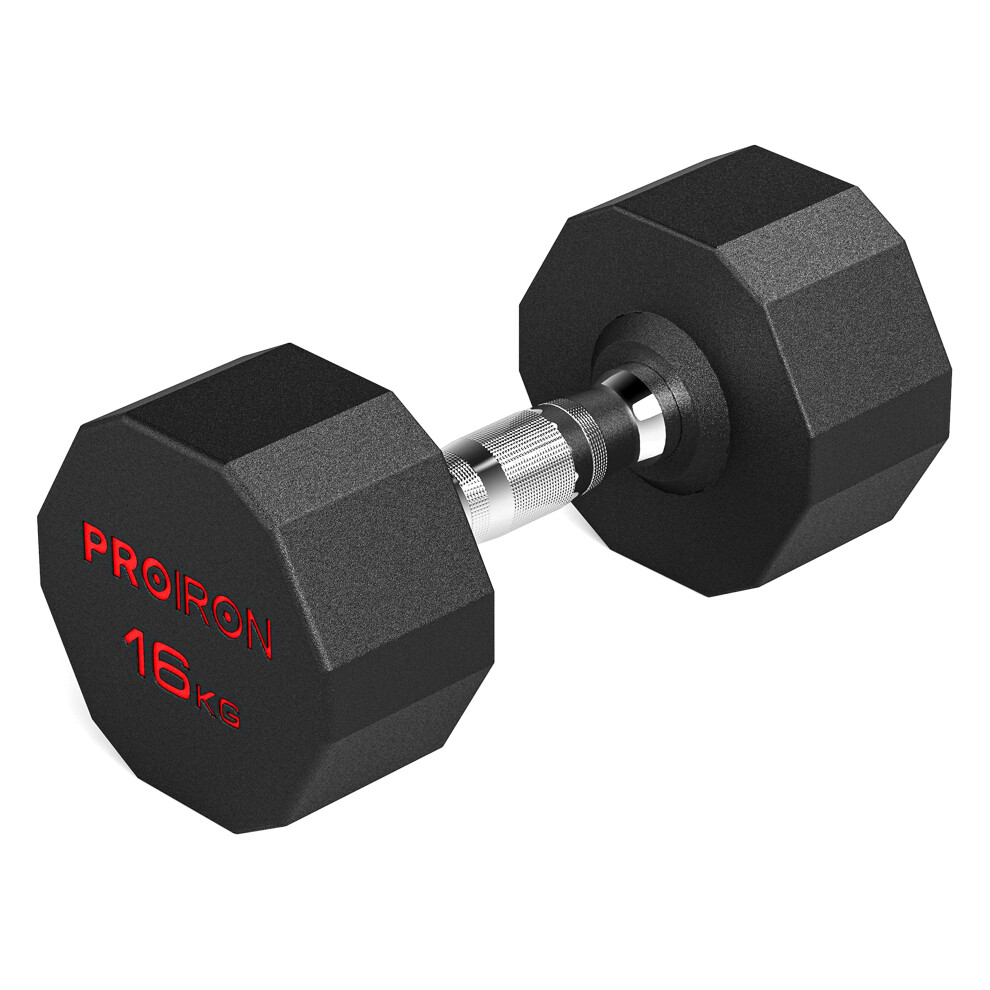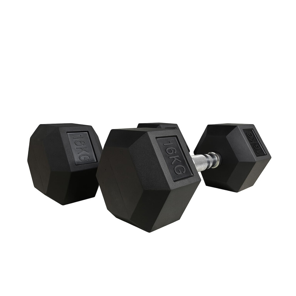 Hex Dumbbell 6–20KG – Premium Rubber Dumbbells Set -Coated Free Weights with Anti-Slip Chrome Handles – Ideal for Home Gym Sports & Full-Body Training (1x 16KG)