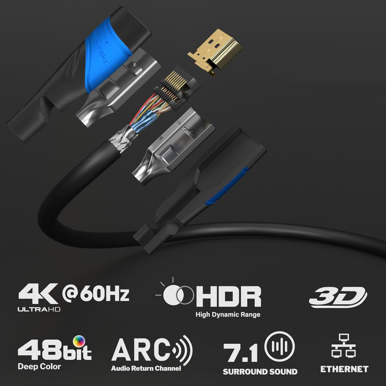 Jojobnj 4K HDMI Cable 20m, High Speed HDMI 2.0 Cord 18Gbps, Ultra HD, Ethernet
