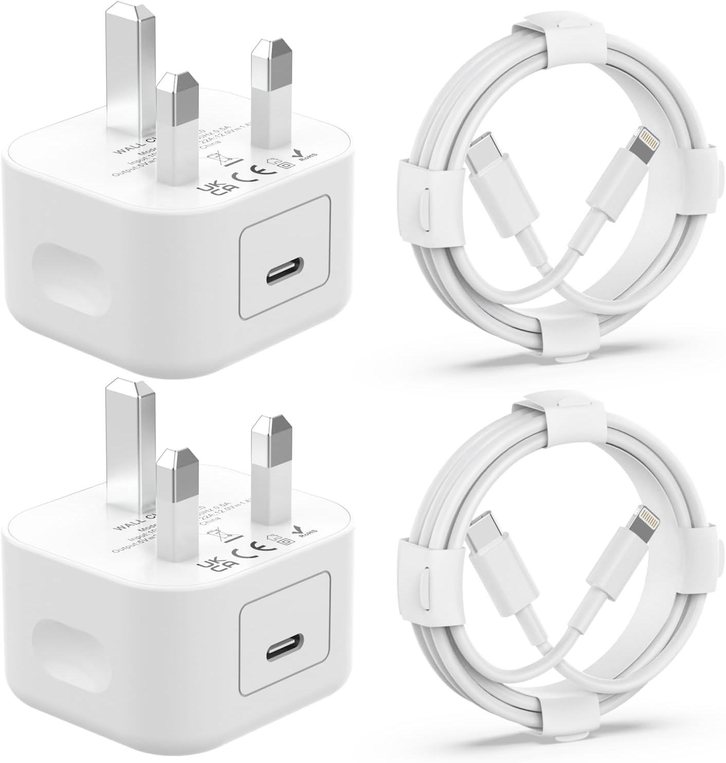 USB C Charger for iPhone 17 16 15 Charger 20W Fast Charger USB C Plug&Cable, 2Pack Type C UK Wall Phone Power Adapter USBC Lead for iPhone 17e/16/15/Pro/Max/Air/Plus/iPad/Samsung S25/S24/S23 Series