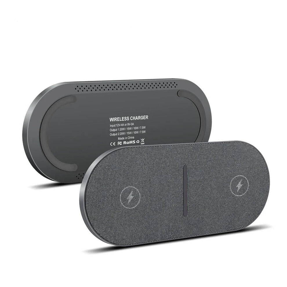 (Double 15W) Dual 20W Fast Wireless Charging Pad for iPhone & Samsung - Includes Type-C Cable, Slim Design, LED Indicator, Safe Charging