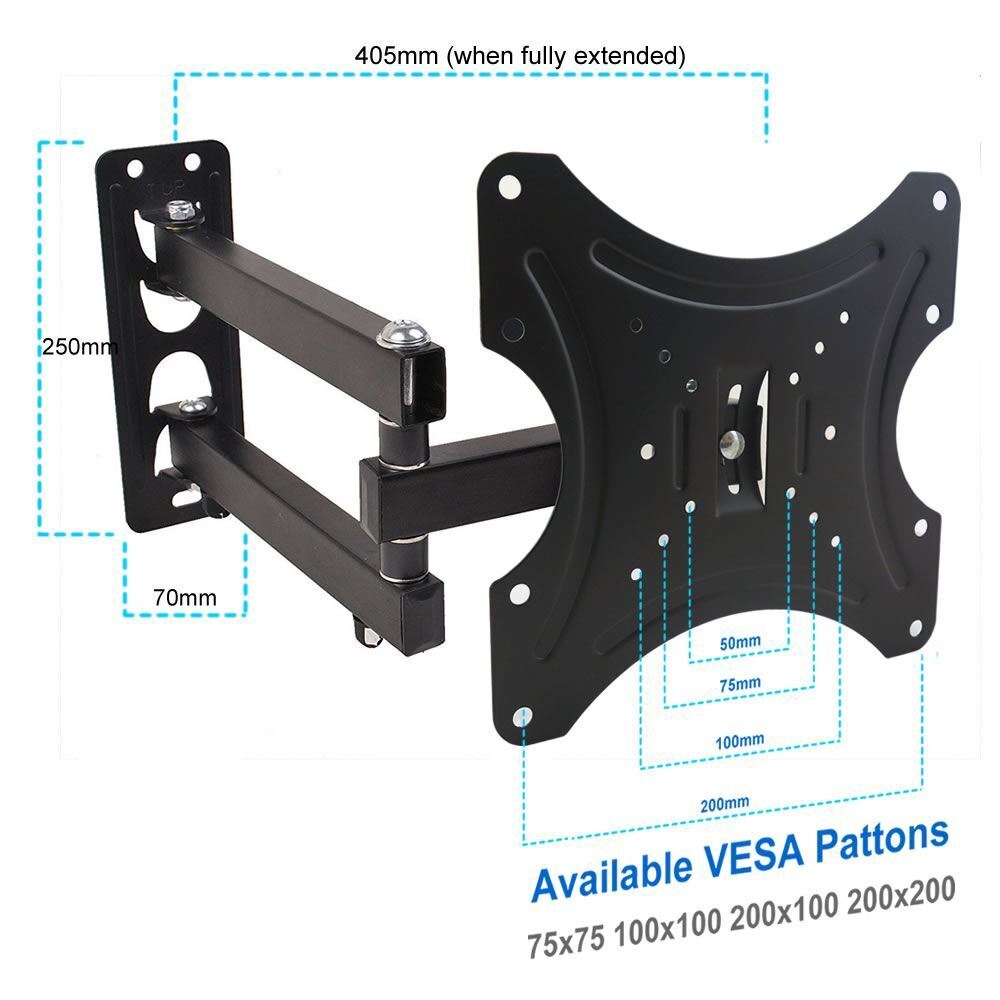 Swivel Arm Wall TV Bracket For 19 21 24 28 32 42 Inch Monitor Tilt Motion Mount