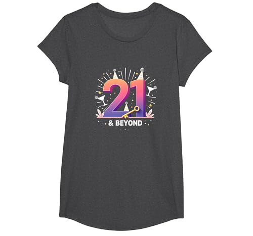 21 & Beyond: Festive Birthday Celebration Gift T-Shirt, Girls, Dark Heather Grey, Medium
