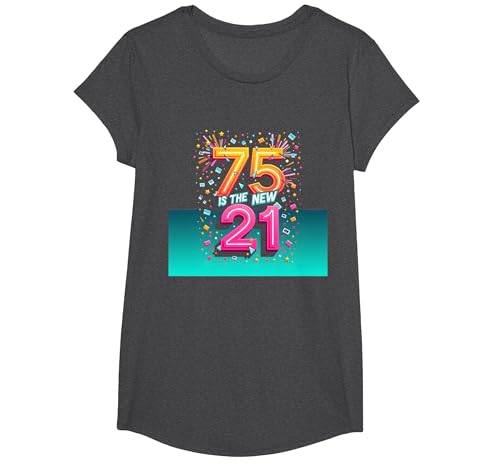75 is The New 21 Birthday Gift Celebration Humor T-Shirt, Girls, Dark Heather Grey, Medium
